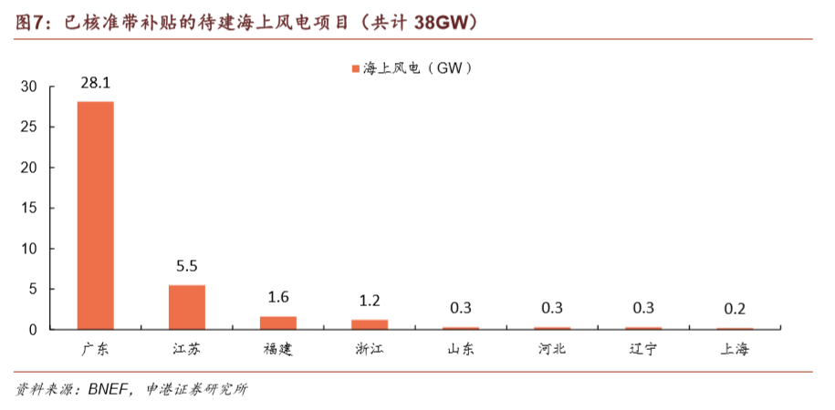海上風(fēng)電補(bǔ)貼來源將會發(fā)生變化。自2022年起,中央財(cái)政將停止對新建海上風(fēng)電項(xiàng)目發(fā)放補(bǔ)貼,轉(zhuǎn)而鼓勵(lì)地方政府自行補(bǔ)貼,支持本地海上風(fēng)電項(xiàng)目的建設(shè)。目前海上風(fēng)電已核準(zhǔn)未建項(xiàng)目容量達(dá)38GW,主要集中在廣東。海上風(fēng)電政策的變動(dòng)以及大量核準(zhǔn)項(xiàng)目,將使得海上風(fēng)電在2021年底前迎來一波搶裝熱潮。